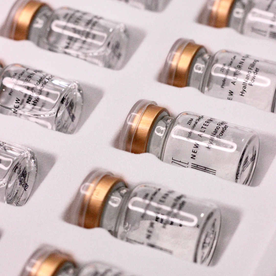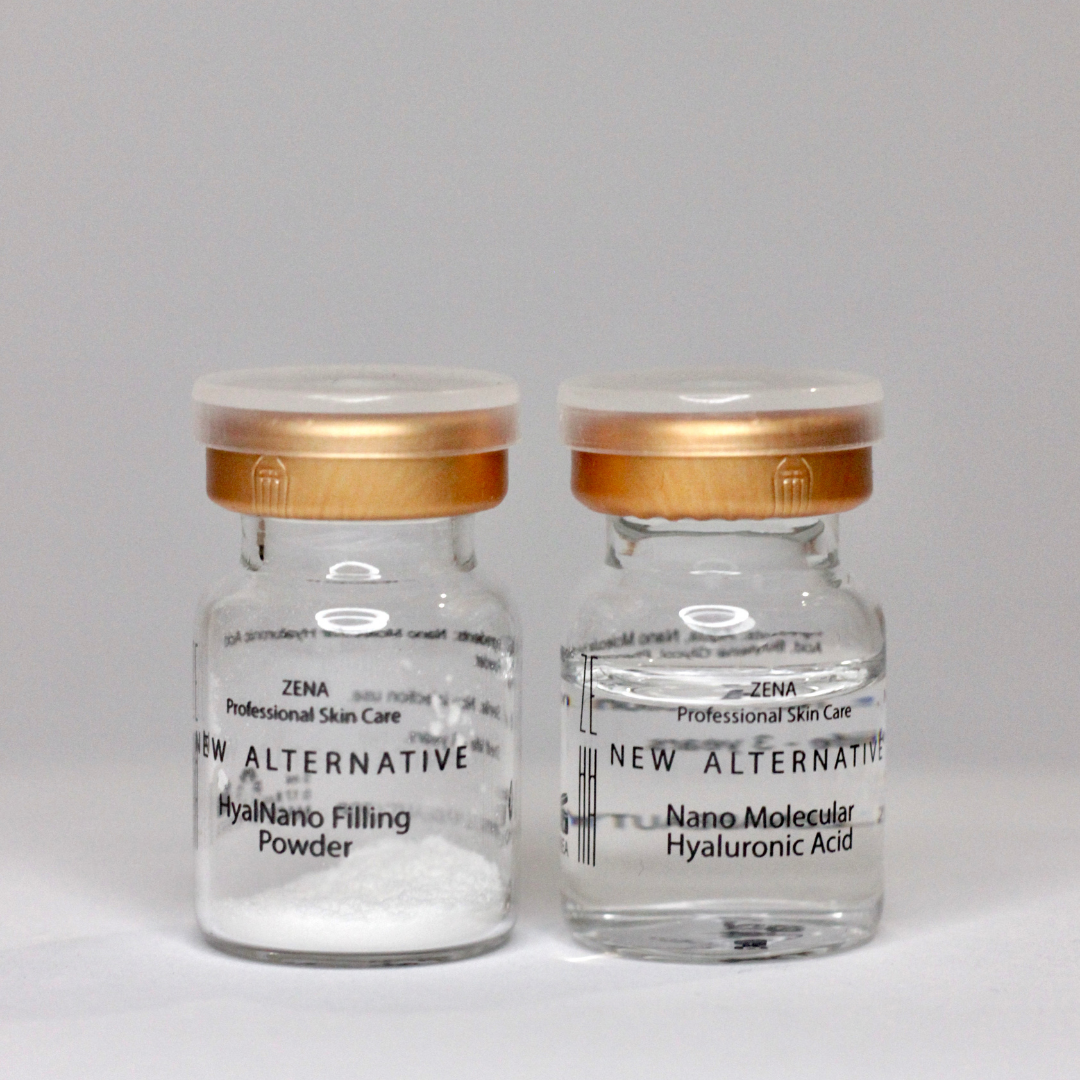 An alternative treatment to fillers, utilizing 100% nanoparticles of hyaluronic acid powder and serum.